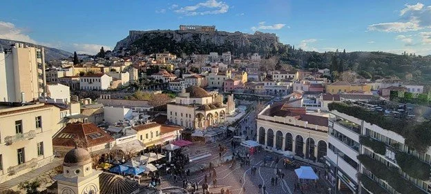 Monastiraki Square was our first stop. You can see the Acropolis’s beautiful view from the rooftop at the “A for Athens” nearby.